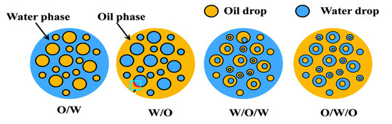 امولسیون ها سیستم هاي دو فازي هستند که براي ثبات روغن در آب به سورفکتانت نیاز دارند و به عنوان روغن در آب(O/W) ، آب در روغن (W/O) یا امولسیون هاي چندگانه مانند امولسیون هاي آب در روغن در آب یا روغن در آب در روغن طبقه بندي می شوند.